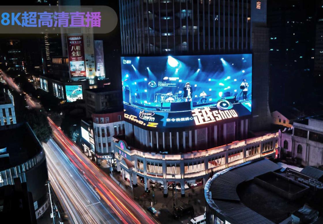 北上廣深唯一獨占步行街入口的超級8K大屏,國內(nèi)首個1200平方8K超高清巨幕。