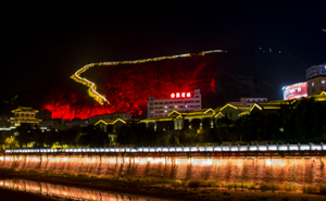延安寶塔山體巨幕燈光秀廣告,延安燈光秀廣告公司,萬事成傳媒