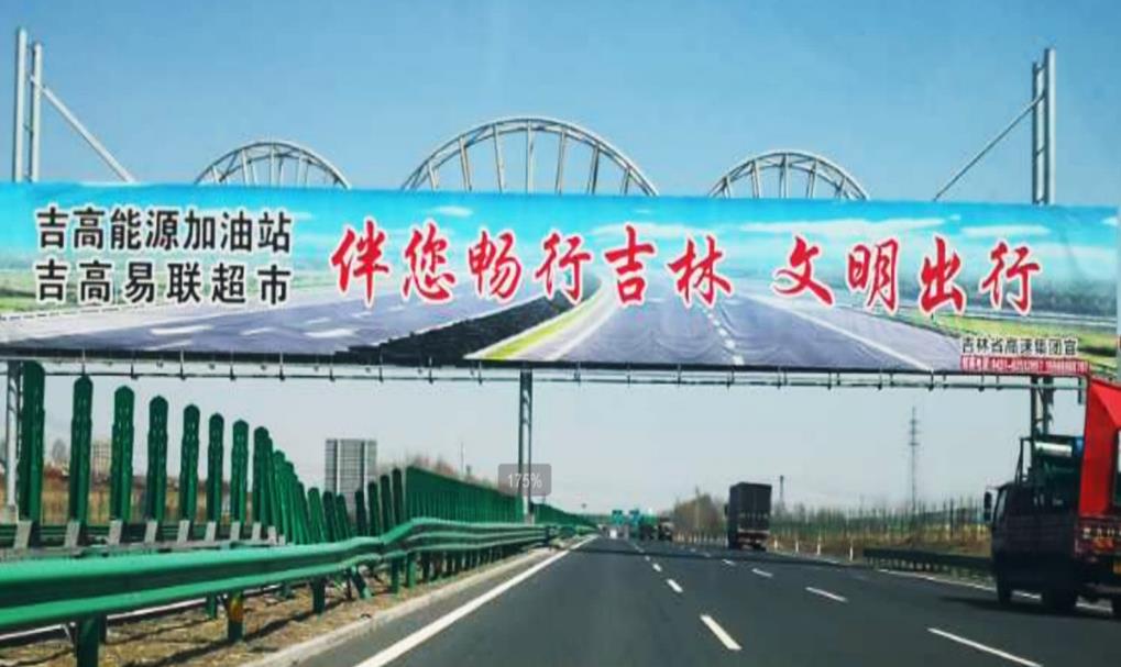 此跨線橋位于五里坡收費站,吉林省門面。效果顯著,可視距離遠,視覺好,廣告效益高。