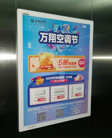 電梯廣告類型多樣,以商務電梯、樓宇電梯為主,表現形式主要為在電梯轎廂內安裝成相框的形式,還有一種是在電梯門上直接安裝廣告。