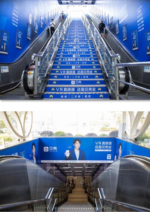 整體單畫面梯階創意貼位于站點出入口樓梯位置,整體視覺效果突出,可利用樓梯的立體感制造創意空間感。