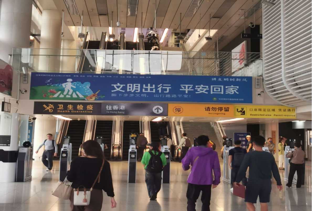 禁區內排隊出入境的通道上,深港跨境口岸媒體,重要提示,吸引消費者蘭注