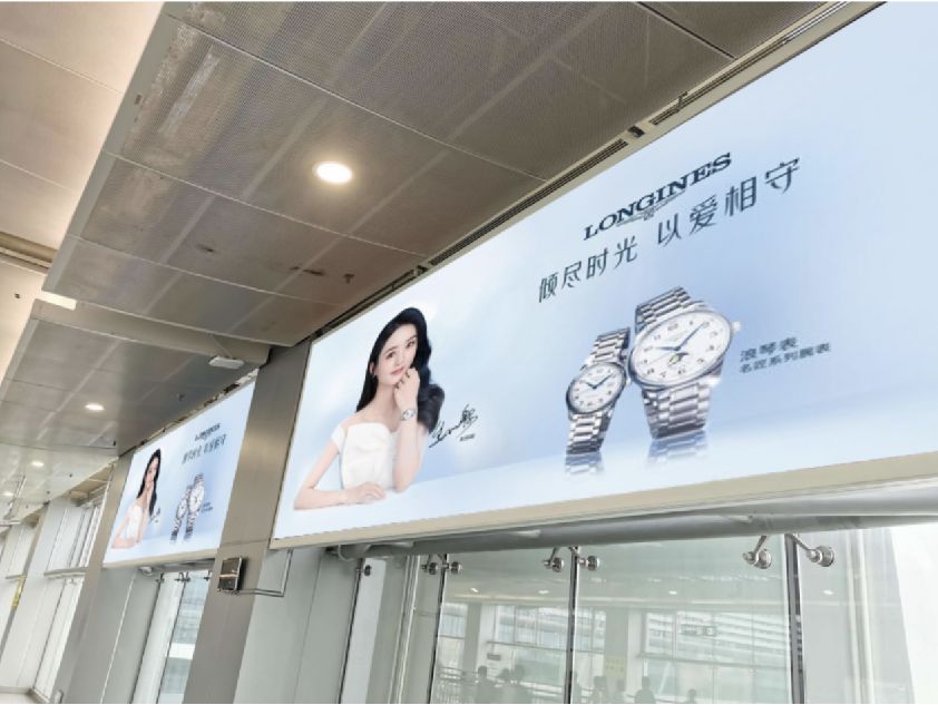 位置佳,位于出境扶梯正上方覆蓋口岸出境旅客。出境必經,與地鐵接駁,與旅客出境視線正對且與旅客距離近,有很好的視覺沖擊。