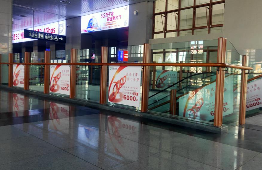 通遼站北出站扶梯、出站廳圍欄玻璃貼廣告