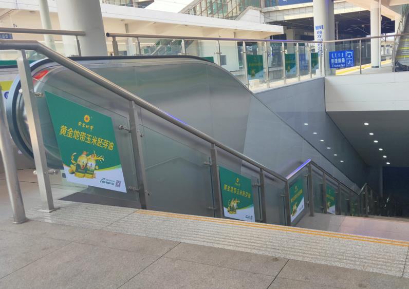 通遼站進站大廳進站扶梯廣告、天井圍欄玻璃貼廣告