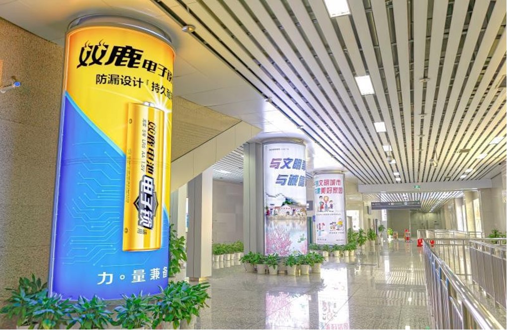 寧波高鐵南廣場到達(dá)層南廣場通道圓柱燈箱廣告