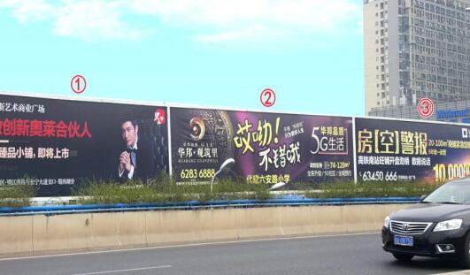 | 合肥落地看板廣告 媒體位置:徽州大道高架下口飛龍橋上口處 發(fā)布形式:噴繪畫面 媒體規(guī)格:20m×7m=140 ㎡/塊 媒體簡(jiǎn)介:廣告牌位于徽州大道高架下口處,高鐵南站區(qū)域。此處是通往濱湖及高鐵站等地重要的通道。 |
