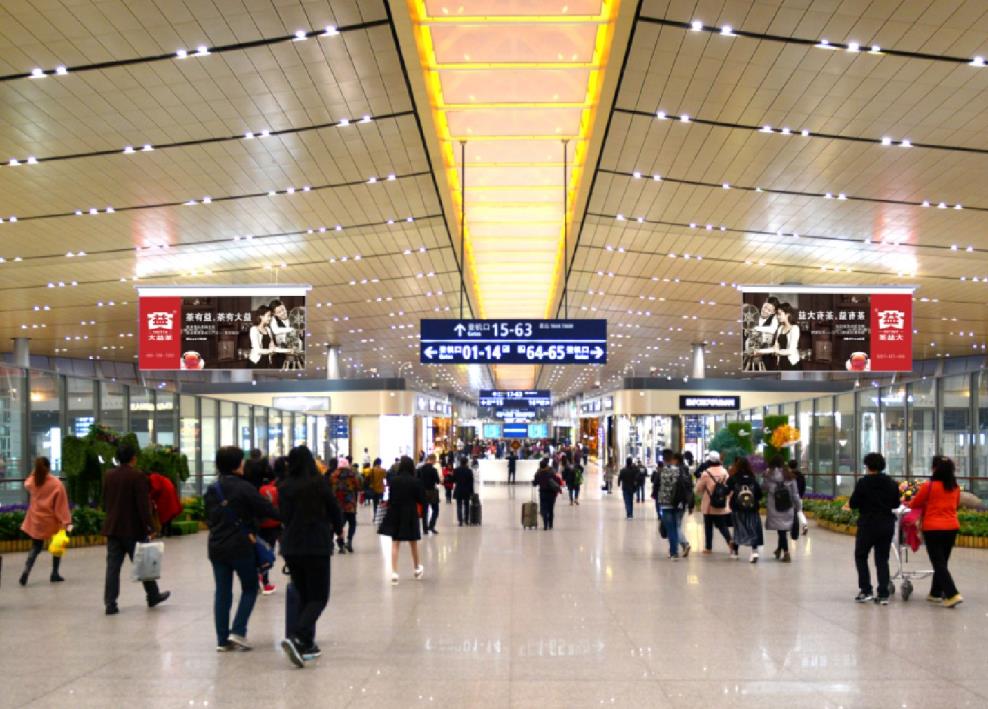 F2層國內到達東、西指廊墻面燈箱廣告