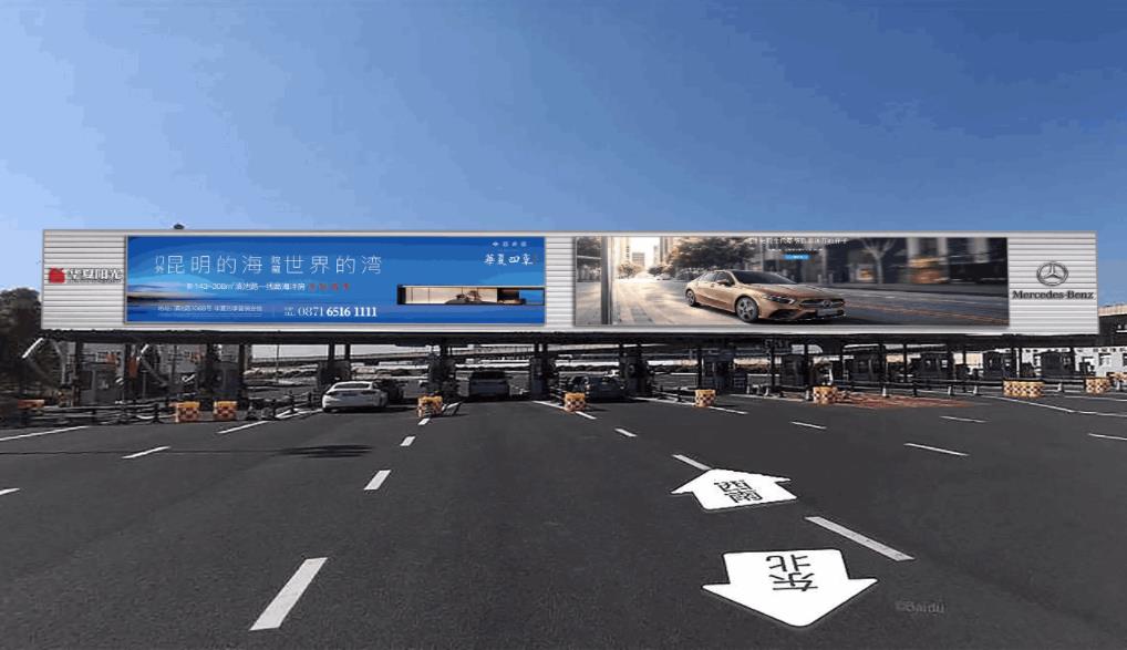 媒體位于新嵩昆高速公路空港東收費站出入口,區域附近唯一廣告媒體,車輛停留收費站減速,廣告迫視性強,到達率高。