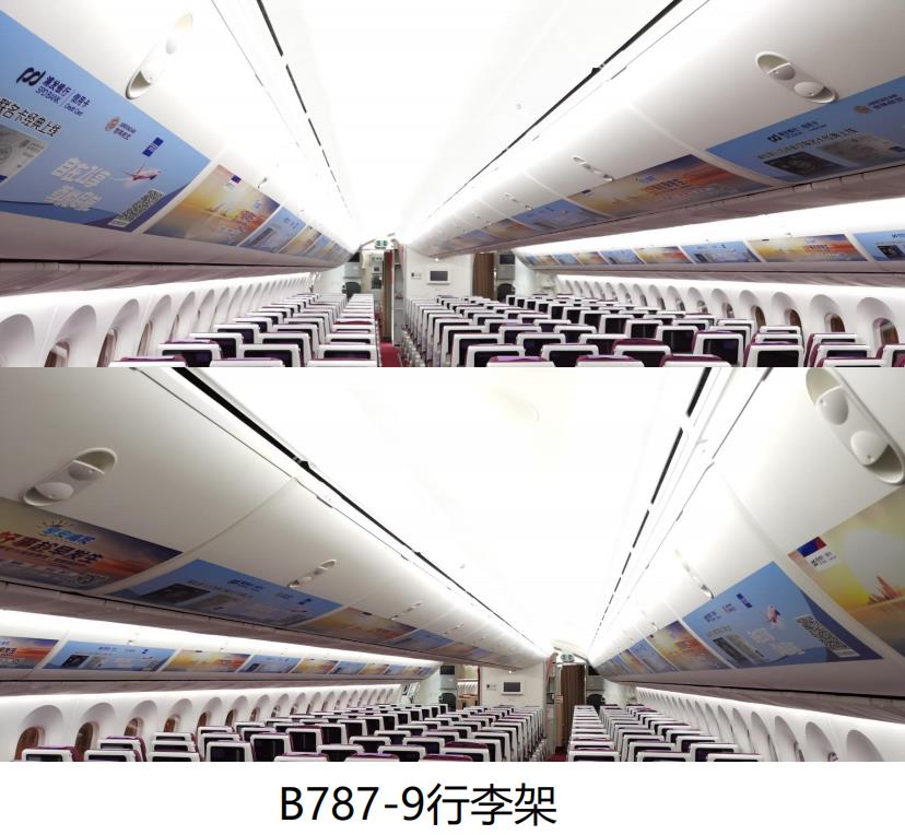 行李架廣告是指位于旅客上方的存放手提行李架外觀,將廣告客戶的LOGO、形象圖案和(或)廣告語(yǔ)張貼在吉祥航空機(jī)內(nèi)的行李架(局部鋪)上,行李架廣告是旅客進(jìn)入機(jī)艙首先接觸到的廣告內(nèi)容。