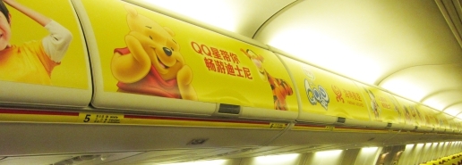 位于通道兩側,占領整個機艙,是機艙內部最大面積的廣告。旅客進入飛機機艙同時,一眼望去便是一排整齊的形象廣告,具有良好的視覺沖擊效果,也是一個可以充分發揮廣告創意的空間。