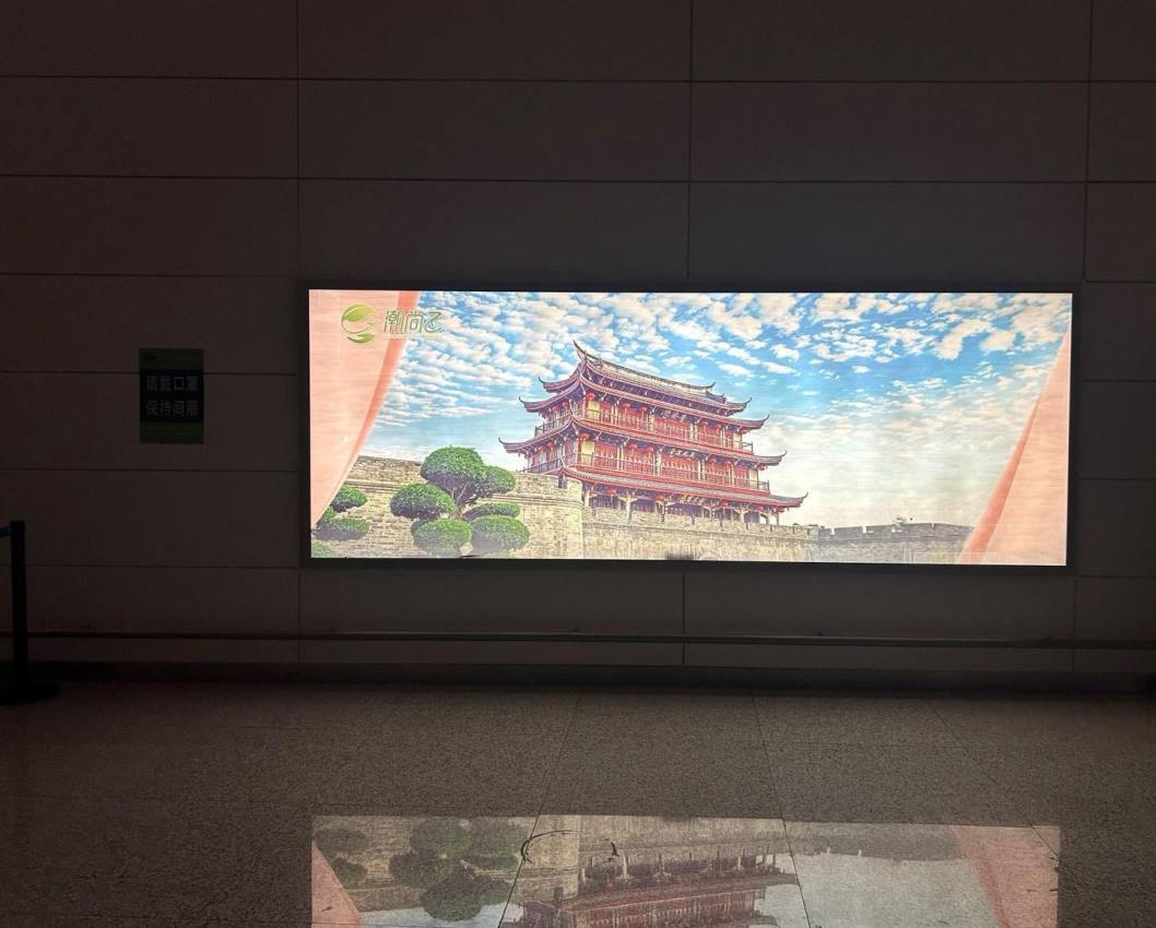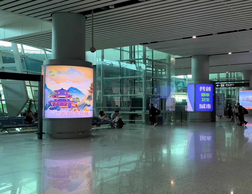 揭陽潮汕機場到達侯客大廳包柱燈箱廣告