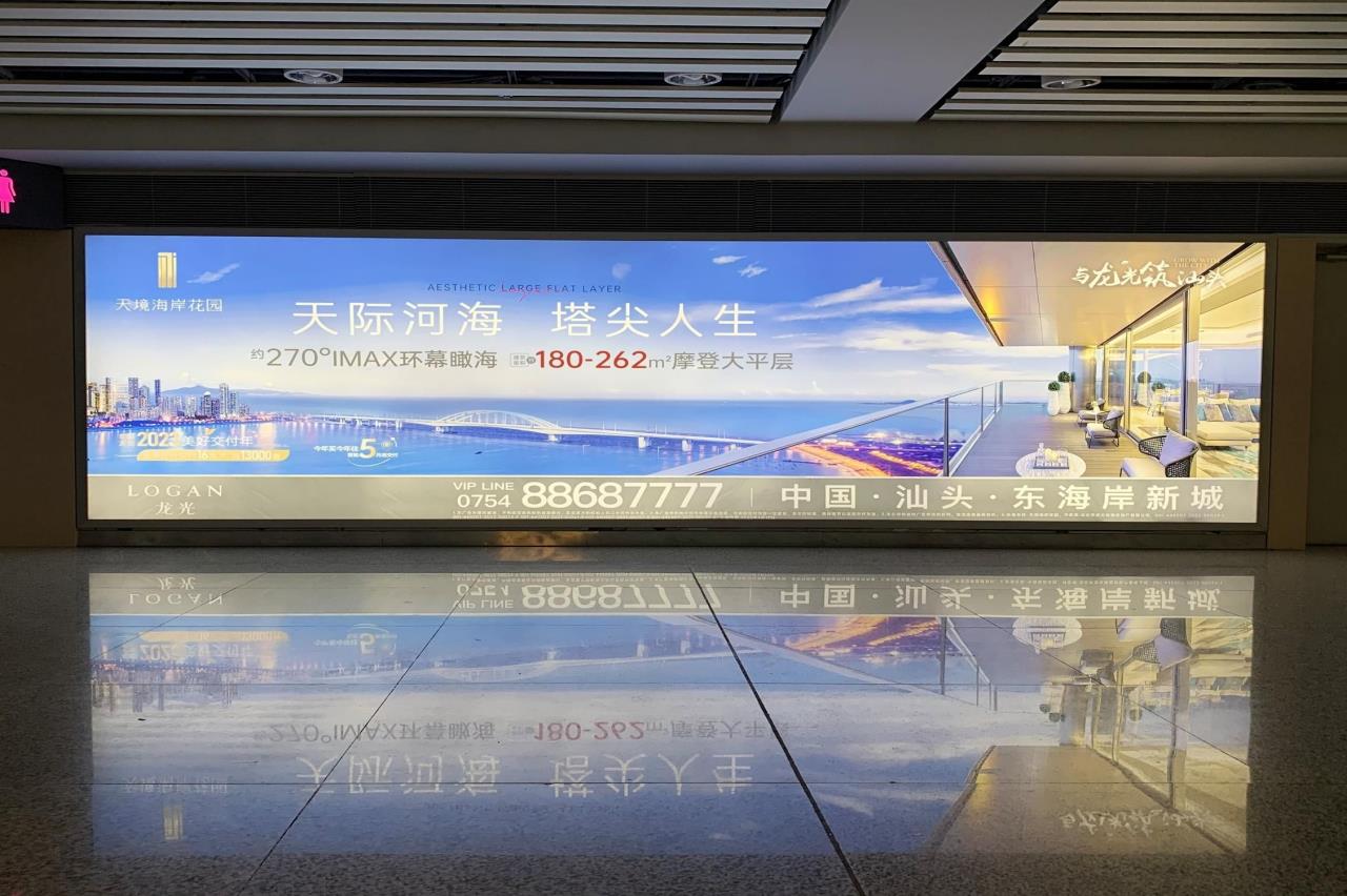 揭陽潮汕機場國內/國際出發侯機廳刷屏機廣告
