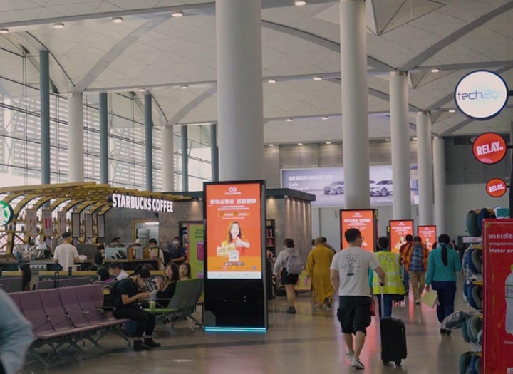 100% 從金邊國際機場出發(fā)的乘客都可以看到的lcd廣告,它可以以多種語言運行訊息傳遞,并有機會全天更改內(nèi)容以針對不同的受眾。