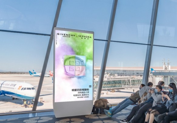 機(jī)場電視、刷屏機(jī)廣告是機(jī)場中數(shù)字化戶外媒體的常見廣告形式,一般形態(tài)是落地立式刷屏機(jī)、懸掛電視,廣泛分布在機(jī)場、地鐵站、樓宇電梯等候區(qū)等公共場所,采用終端聯(lián)網(wǎng)控制的特性讓廣告可實(shí)現(xiàn)實(shí)時播放控制。在人流量密集的場所刷屏機(jī)擁有的聲音+視頻動態(tài)傳播的效果可使廣告具備更高的吸引力。