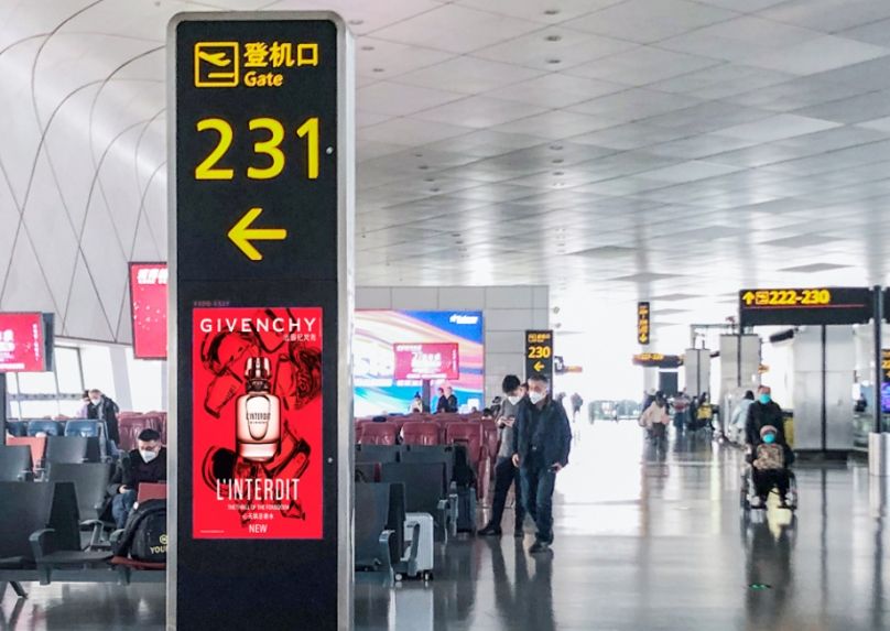 大興機(jī)場貴賓區(qū)入口大廳、休息區(qū)、通道以及餐廳區(qū)域電子刷屏廣告