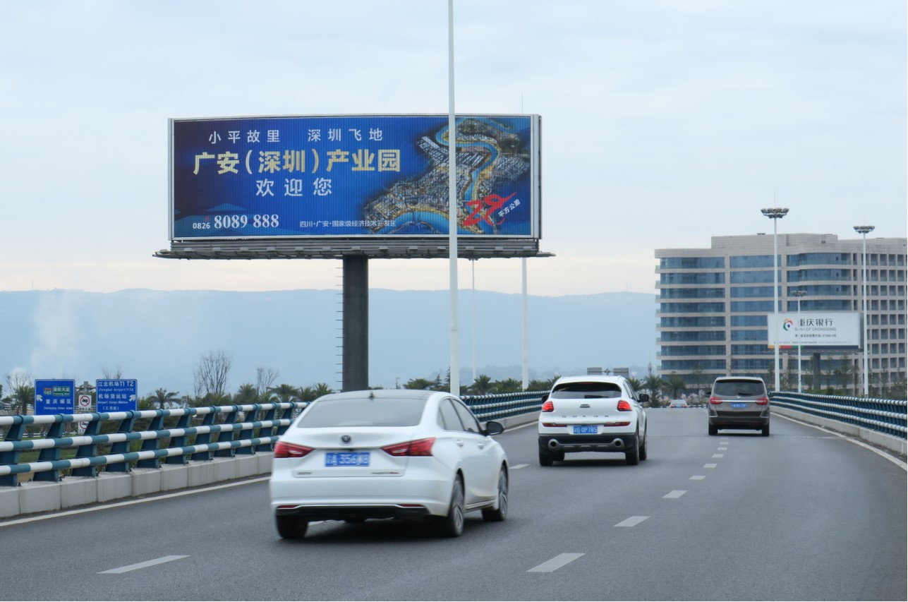 主城東環區域前往機場T3航站樓的必經要道。 同時是渝宜高速公路的一段,是重慶主城通往長壽,涪陵,萬州等長江下游的高速干道。車流量極大,視野開闊,周邊無其他媒體干擾,廣告發布效果明顯。