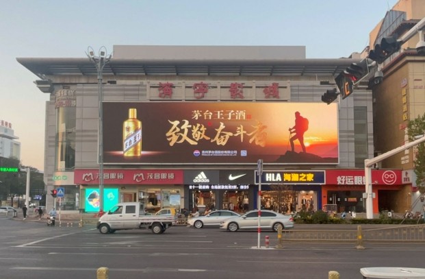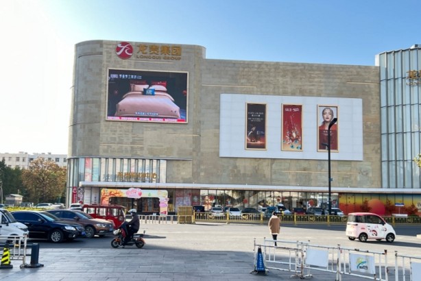大屏位于濟(jì)寧太白中路龍貴購物中心樓體,濟(jì)寧龍貴購物中心是目前為止?jié)鷮幬ㄒ灰患覔碛休p奢品牌的商場(chǎng)。