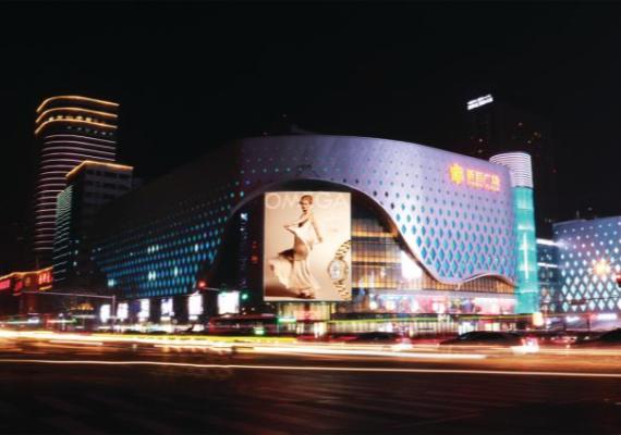 石家莊市中華大街與中山西路交匯處東北角新百廣場樓體