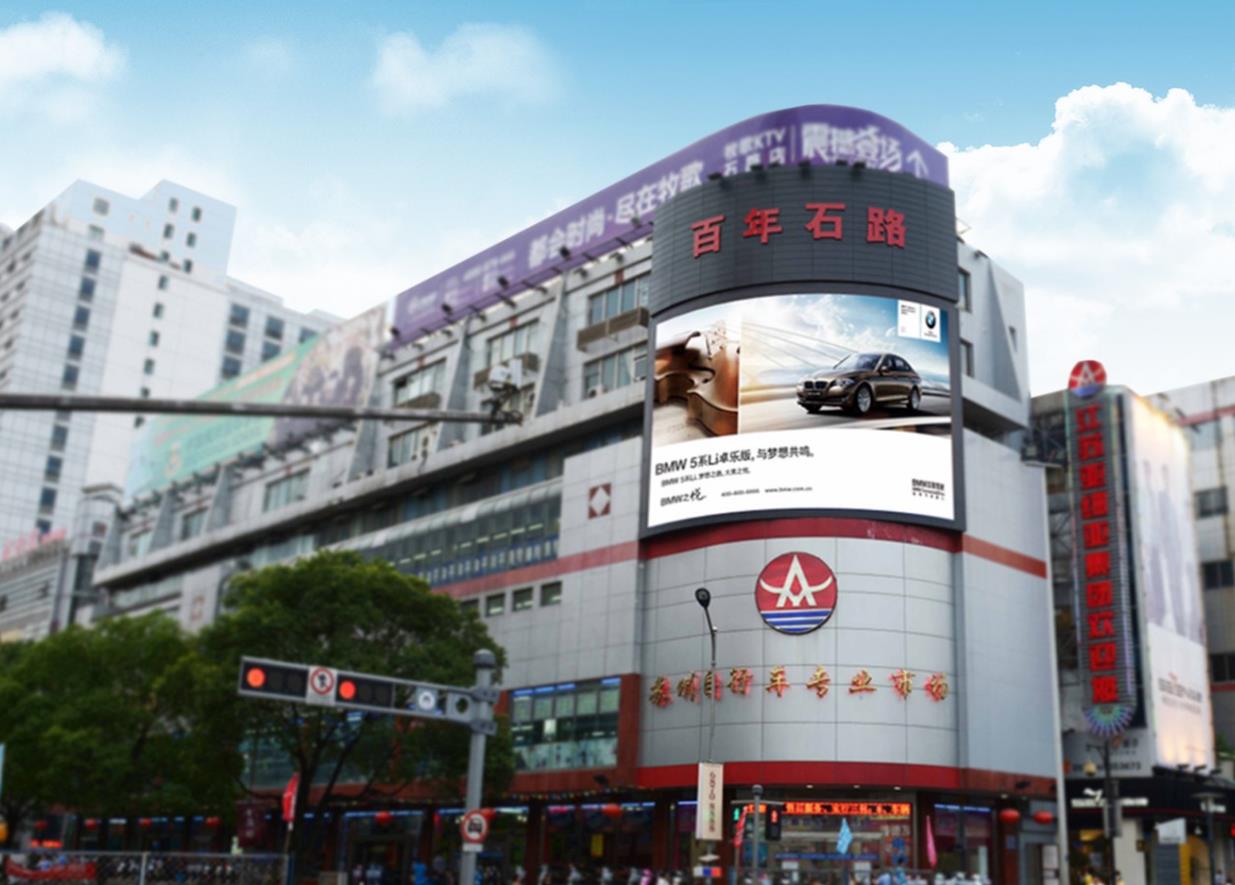該媒體位與蘇州三大商圈之一的‘石路商圈’步行街中心,“石路國際商城”北門正上方。