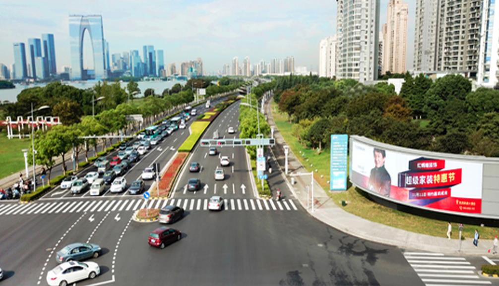 全新更新的戶外高清顯示屏,加之該廣告位于干將路相門橋段,是園區與市區的最繁華的出入口;