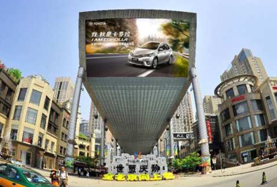 戶外LED大屏的投入成本較低,投放效益也較為顯著。由于戶外LED大屏使用條件較好,對于環境干擾的降低和對建筑安全的保護,以及廣告主選擇戶外廣告方式的自由度更高,目前主流的戶外 LED顯示屏在很多城市當中都有應用。