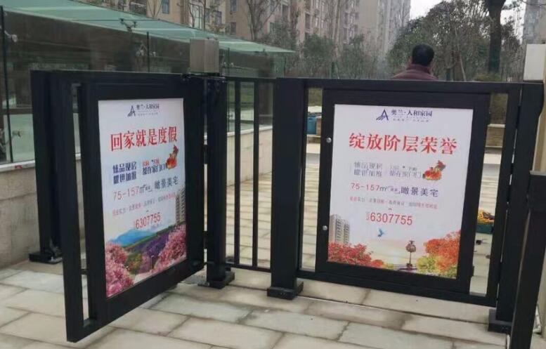 由人行通道門禁和汽車出入道閘構成,設置在小區的大門口,是小區居民進出的必經通道,小區封閉管理進出刷會使受眾在廣告位前停留一定的時間具有一定的強制傳播效果。