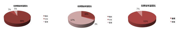 3、北京站,普速車數量占比93%,勱車數量占比7%,北京站發送列車主要以普速列車為主,包含京沈線、部分京哈線、京秦線