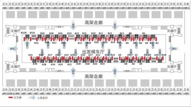 分      布:  高鐵站內候車廳、檢票口、安檢口、進出口、售票廳、扶梯口及站臺等重要關口
