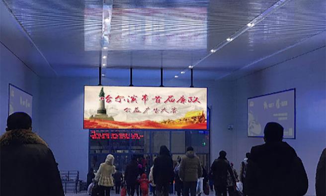 哈爾濱站刷屏廣告,哈爾濱站候車廳LED刷屏機(jī)廣告,萬事成傳媒