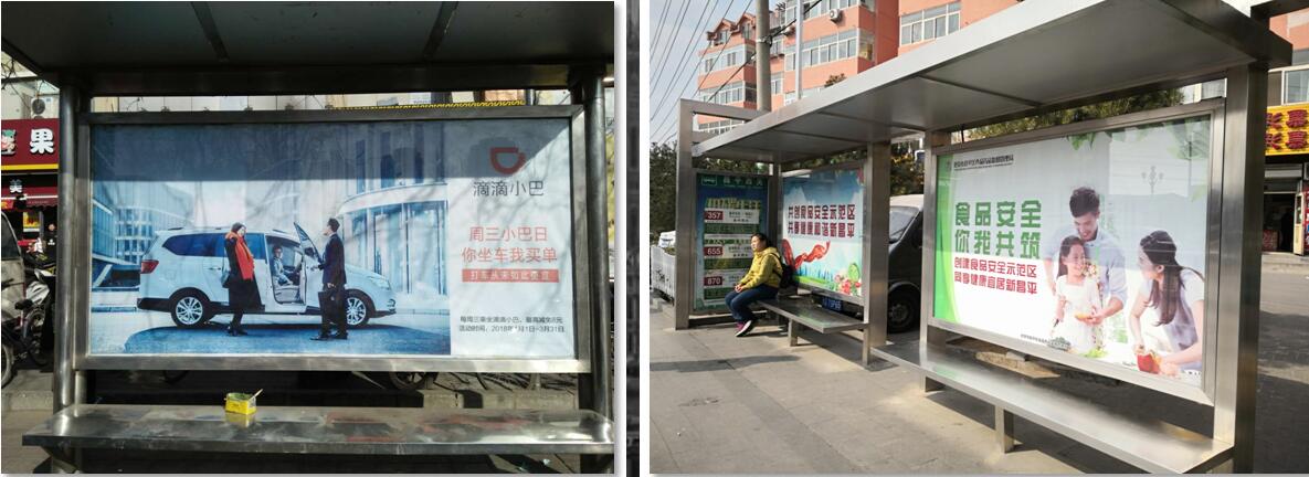 B類候車亭 指不銹鋼材質雙廣告位 規(guī)格為0.91x1.65m或1x1.75m等 分布范圍布及整個昌平地區(qū) |