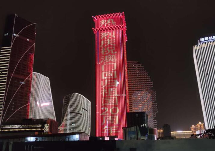 城市地標(biāo)燈光秀廣告,廣東珠海橫琴國貿(mào)大廈樓體燈光秀廣告