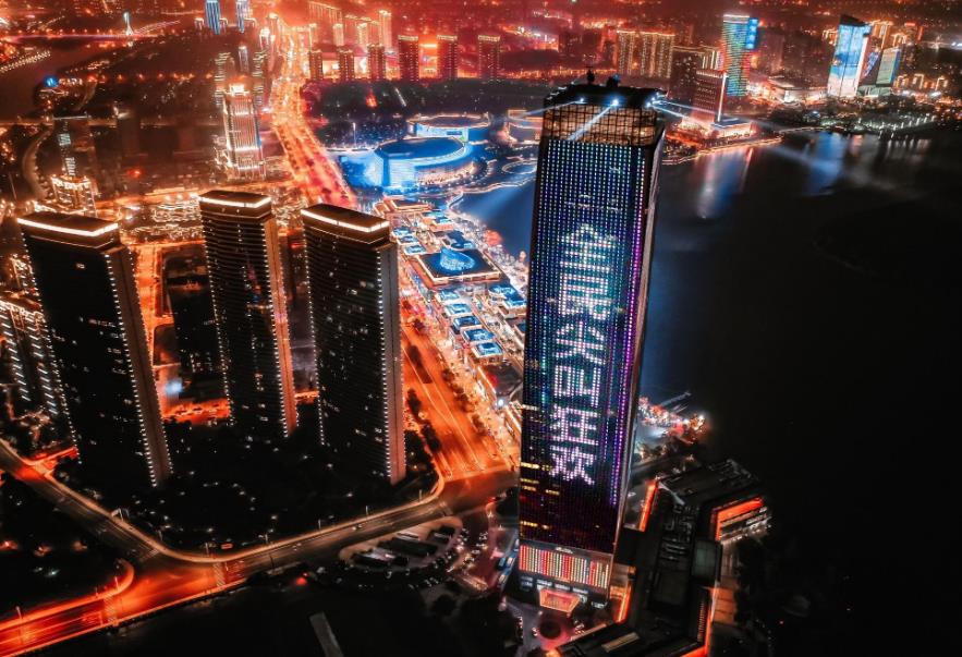 無敵景觀-太湖第一高樓;360度環(huán)繞瞰盛宴;231 米 高;1 0 萬 方;日均人流 1 0 0 萬;環(huán)太湖中心;萬顆星光點(diǎn)亮天幕;5 A 甲 級(jí) 環(huán) 幕全 景呈 現(xiàn)