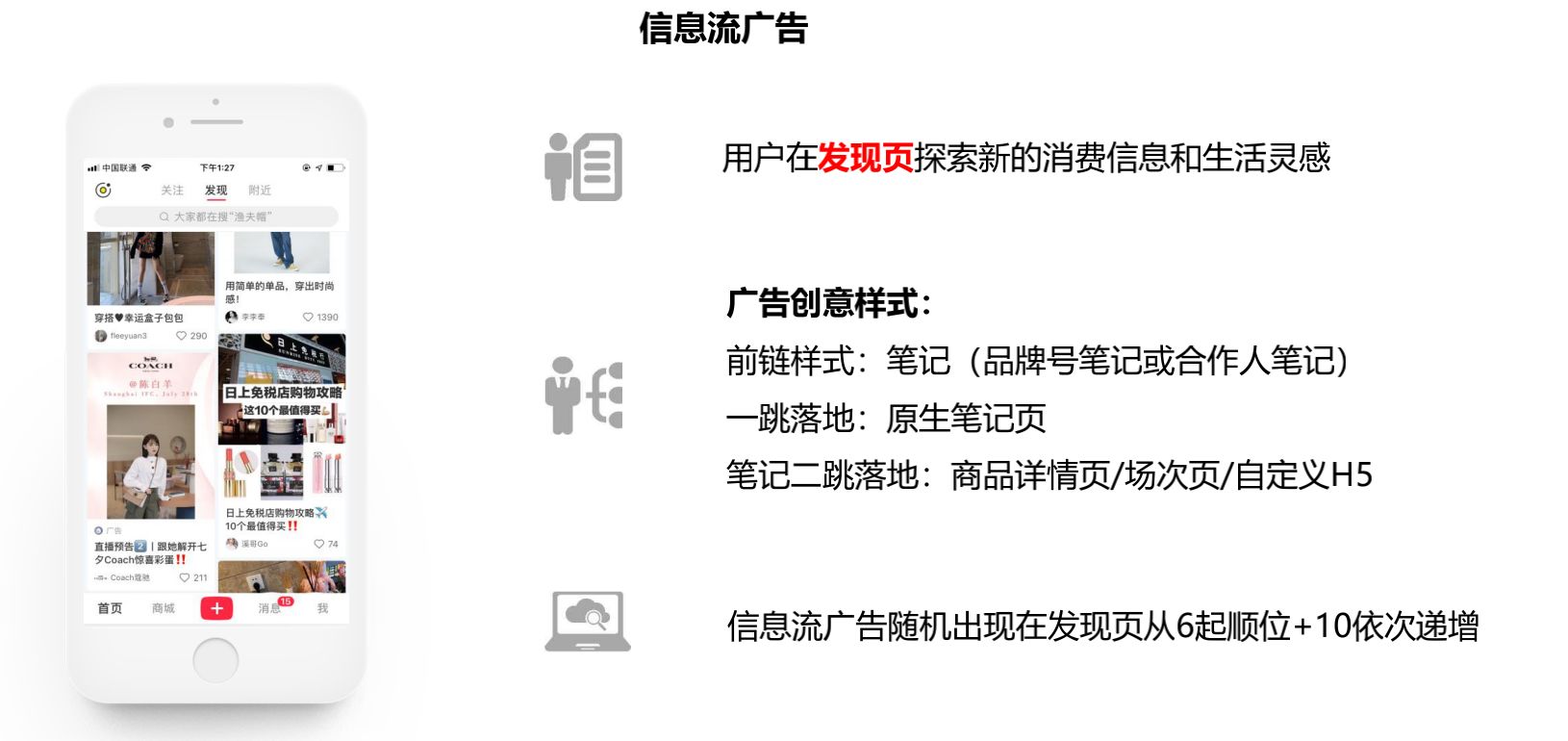 5、廣告主在小紅書上面投放信息流廣告的時候,可以通過對性別、年齡、地域、手機設備等定向設置更好的找到目標用戶群體,將廣告直接展現在他們的面前,能夠獲得更好更優質的廣告投放效果。6、小紅書App全新開啟信息流廣告商業生態,通過品牌號發布原生筆記、品牌合作人發布原生筆記和站內推廣頁投放等形式,放大品牌傳播內容。