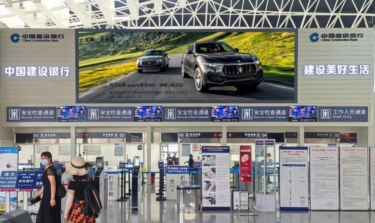 銅仁鳳凰機(jī)場(chǎng)出發(fā)安檢區(qū)led大屏廣告,萬事成傳媒