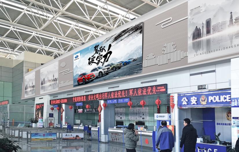 嘉峪關機場廣告  出發到達混合大廳辦票島上方led廣告