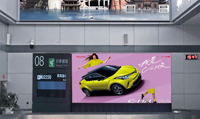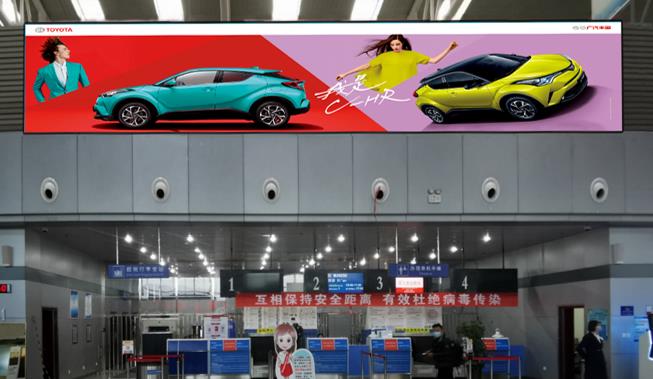 張掖甘州機場混合大廳辦票島行李轉(zhuǎn)盤上方led廣告,萬事成傳媒