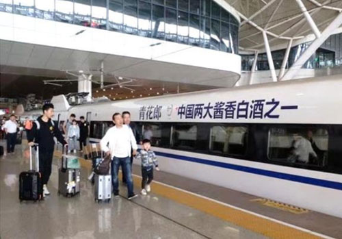 高鐵外車身冠名始終貫穿整個(gè)高鐵運(yùn)營線路,使各地間串聯(lián)起來,形成線性傳播。