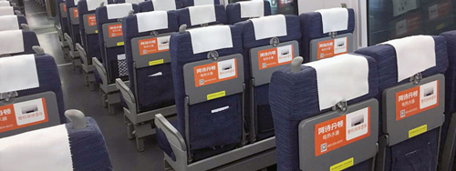 海報:位于所有高鐵車廂內進門處等顯要位置,覆蓋全部高鐵旅客。