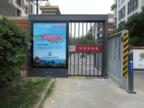 顧名思義,社區(qū)門禁廣告就是安裝在社區(qū)門禁上的廣告,它是由框架和海報(bào)組成。
