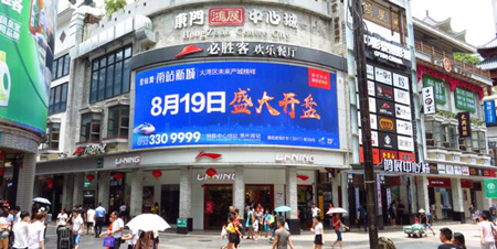 樓宇外墻上的LED廣告通常安裝在人流量較大的商業區樓宇的外立面上,隨著LED市場的成熟與成本的降低,其屏幕面積也呈越來越大的趨勢。在商業區鋪天蓋地的廣告面前,受眾記憶空間的有限性和信息傳播的無限性,已使注意力逐漸成為一種稀缺資源,因此注意力經濟已成為考驗廣告效應的最大尺碼。大面積、動感化、聲畫合一的LED廣告更能全方位促動受眾感官,有效傳達信息,成為企業體驗營銷的一部分。
