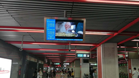 北京地鐵通道LCD電視-進(jìn)出站及換乘必經(jīng)之路,唯一動(dòng)態(tài)內(nèi)容吸引乘客關(guān)注。