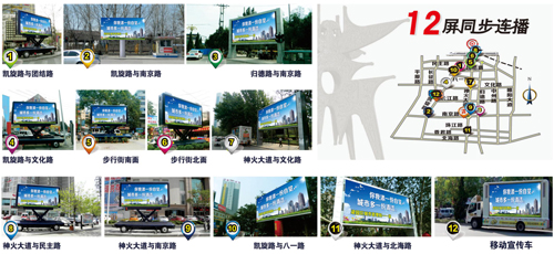 商丘戶外led電子屏點(diǎn)位介紹-12屏同步聯(lián)播