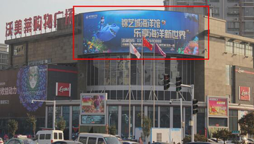 位置:鄭州市金水區  北三環快速路豐慶路沃美萊購物廣場LED大屏      形式:墻面 LED廣告