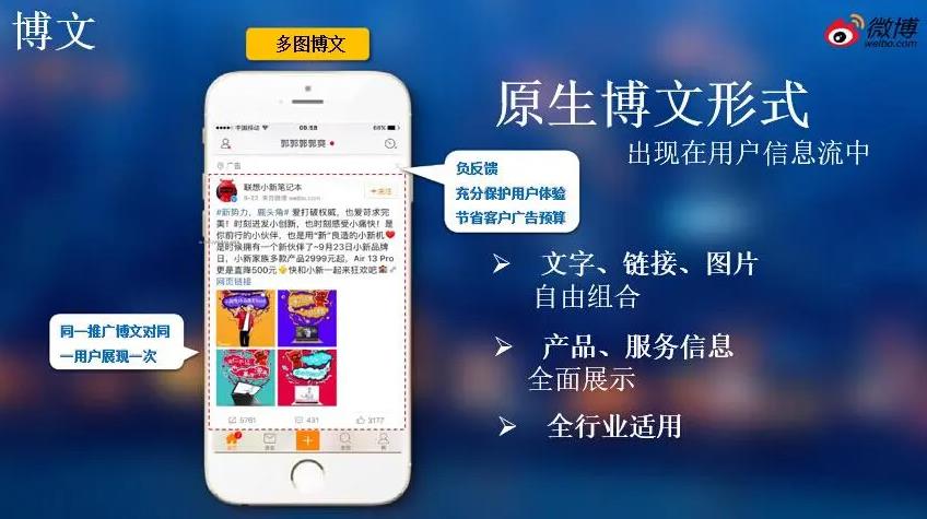 開通微博的后臺管理廣告投推廣帳戶,也是直接開啟微博粉絲通,這樣就可以將廣告以原生態(tài)視頻的推送到微博客戶微博信息流廣告頁面上,并利用大數(shù)據(jù)技術,直接把廣告推送到對產(chǎn)品質量有興趣的客戶群體中。