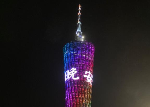 其中,除了有商家投入廣告費用購買廣告時段,讓自己的品牌出現在這個堪稱“廣州之巔”的廣告位上,市民和游客印象更深是每逢節日、重大事件、天氣狀況時,廣州塔塔身出現的各種暖心問候、溫馨提示和節慶祝福。新年、春節到來時,廣州塔塔身打出了“新年快樂”“Happy new year”的滾屏文字,向全城市民送上新年祝福;中秋、國慶等節日,又會出現充滿創意的慶祝節日圖案和祝福文字,增添節日氣氛;當遇到惡劣天氣時,廣州塔塔身又會出現天氣即使預報和“出門帶傘”、“注意保暖”的貼心照顧,就如身邊的親人噓寒問暖;在廣州舉辦《財富》全球論壇,廣州塔塔身也為盛事亮出主題圖案和閃亮文字,化身“宣傳大使”向世界發布這一重大盛事;廣州塔塔身廣告也助力廣州垃圾分類工作,每晚滾屏播放各種宣傳標語和倡議,在夜空中向全體市民和游客傳遞廣州花城的環保理念。