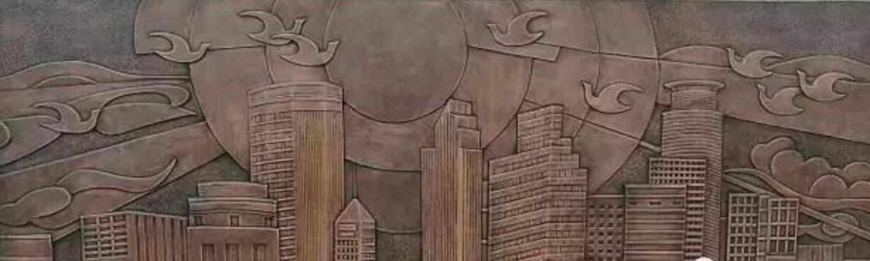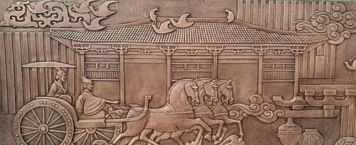 雕塑底座為浮雕,整體設計思路是前“未來”、后“現在”、左“人”、右“文”。即:正前方以高鐵、公路、科技、建設等畫面表現高碑店的未來;后方以建筑、陽光、飛鳥、祥云等表現現在和諧幸福的高碑店;
