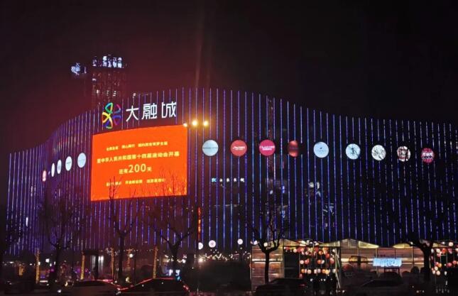 當晚8時,記者在經開區張家堡廣場附近看到,周邊的大融城等幾處商場、寫字樓外立面亮起全運會相關標語,火紅的燈光勾勒出都市時尚線條,流動光影扮靚了城市街區,雖然天空下起了小雨,但亮麗的“燈光秀”仍吸引了不少市民駐足觀看。
