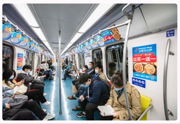 被達美樂廣告包裹起來的北京地鐵看起來太美味了