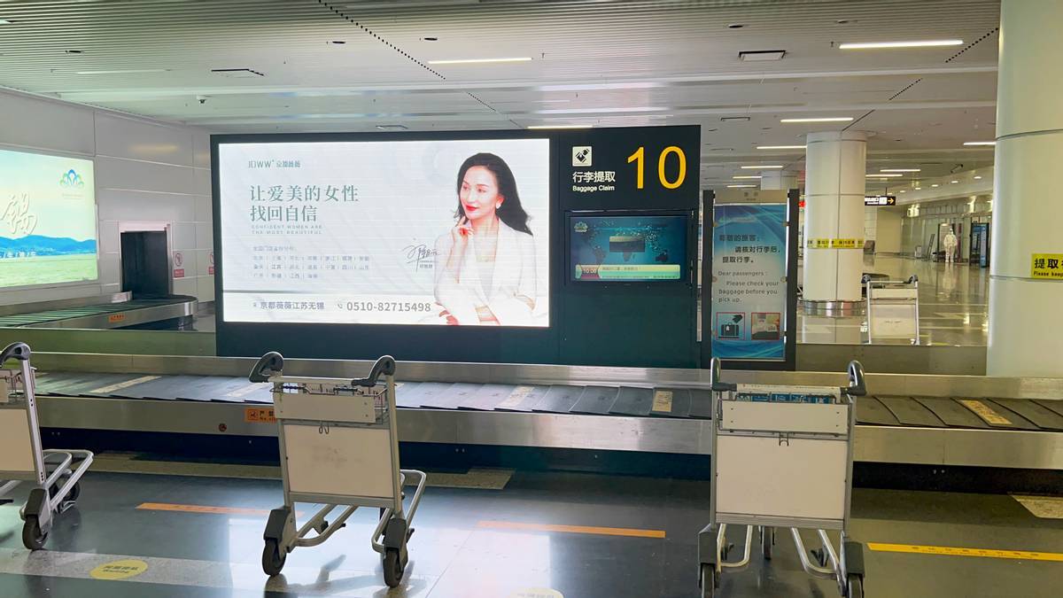 無錫蘇南碩放機場廣告【國內到達行李轉盤上方LED大屏】
